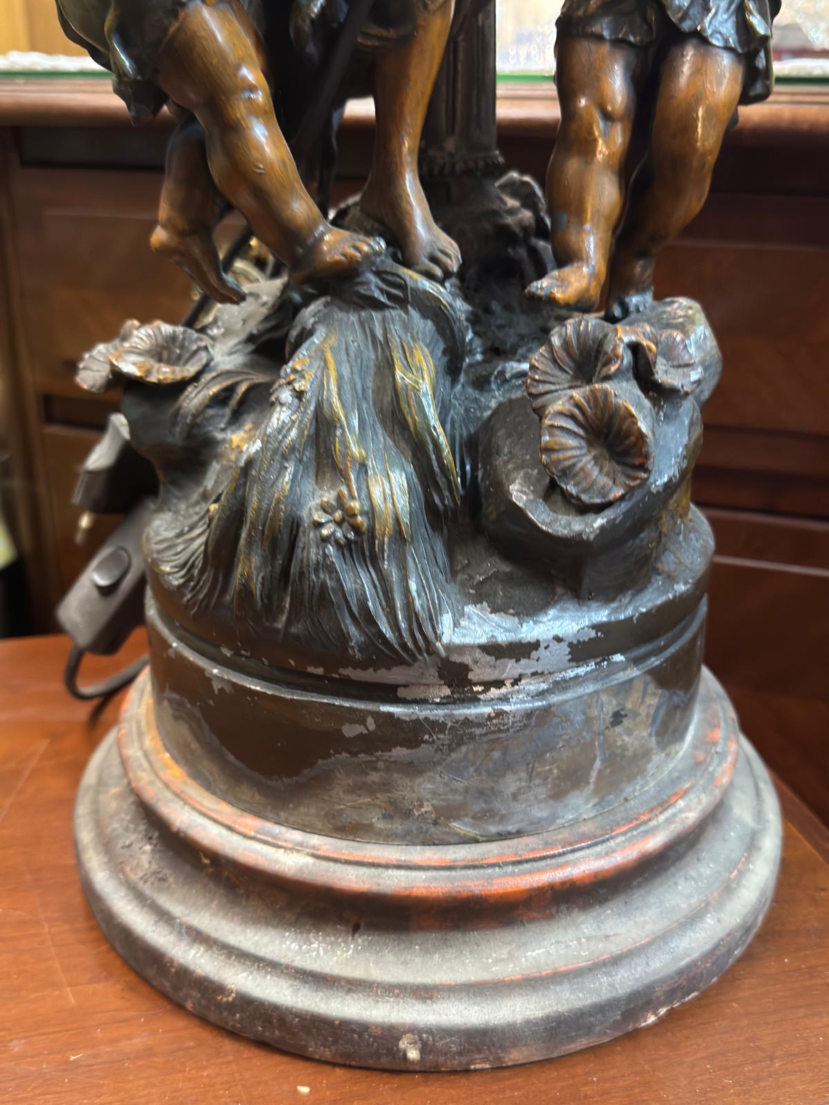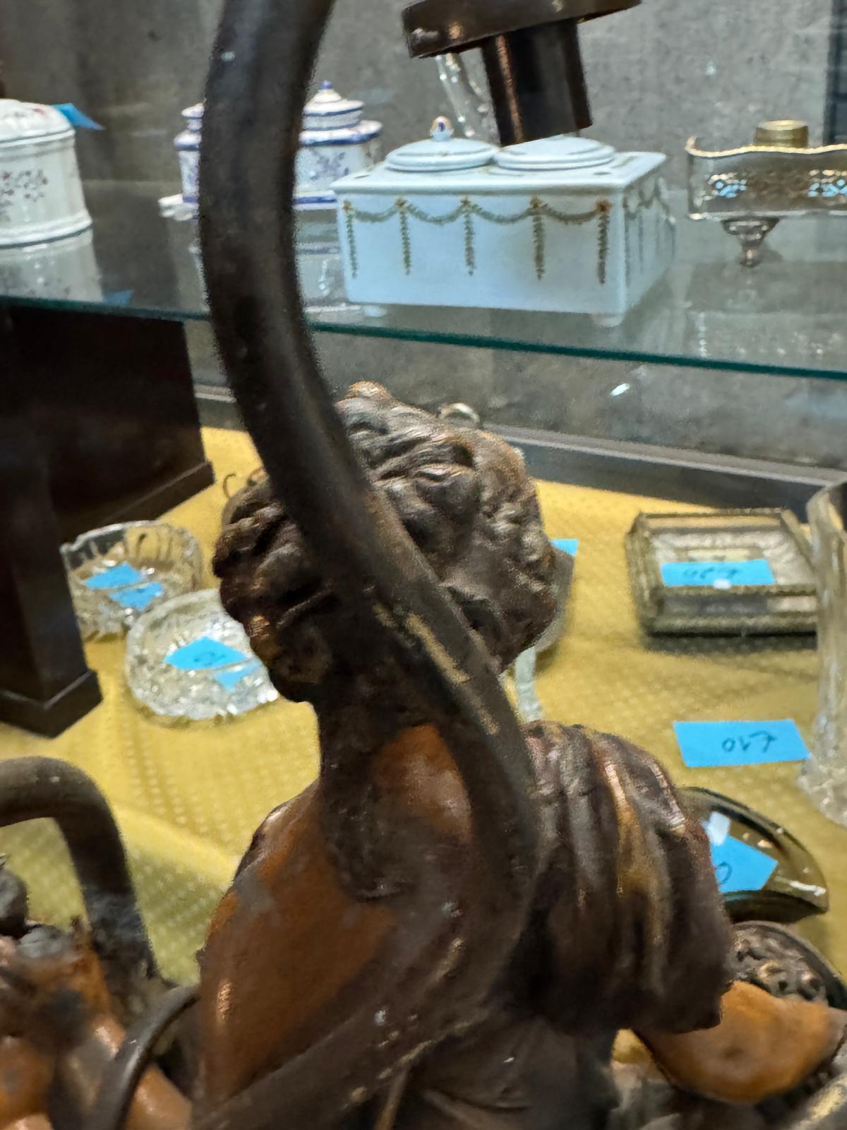 estado para uma peça de época, apresentando o desgaste natural do tempo que lhe confere autenticidade e caráter. A pátina escura realça os detalhes escultóricos da fundição.