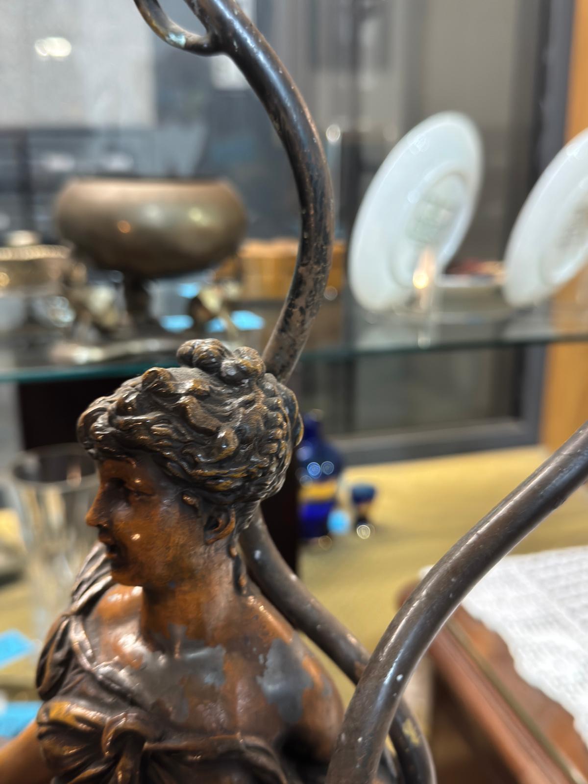 Candeeiro de Mesa Antigo em ferro escultural em ferro , uma verdadeira obra de arte decorativa que transcende a sua função utilitária.