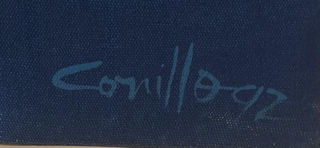 Esta obra destaca-se pela sua qualidade atmosférica e pela harmonia entre suavidade cromática e gesto expressivo. Comillo cria uma composição que evoca paisagens emocionais, onde os gradientes de cor funcionam como cenário para uma dança de linhas e formas caligráficas. A paleta de rosas e azuis confere à obra uma qualidade onírica e contemplativa.