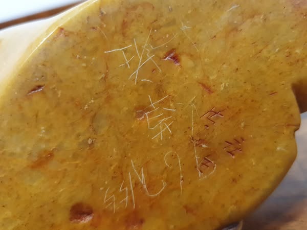 Guanyin com Cão Foo – Escultura em Pedra Sabão Shoushan