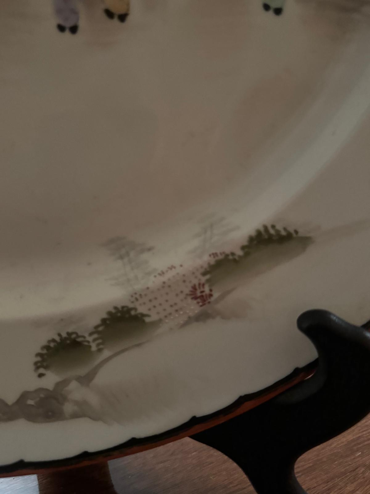 Prato Decorativo Porcelana Japonesa - Cena de Figuras em Paisagem