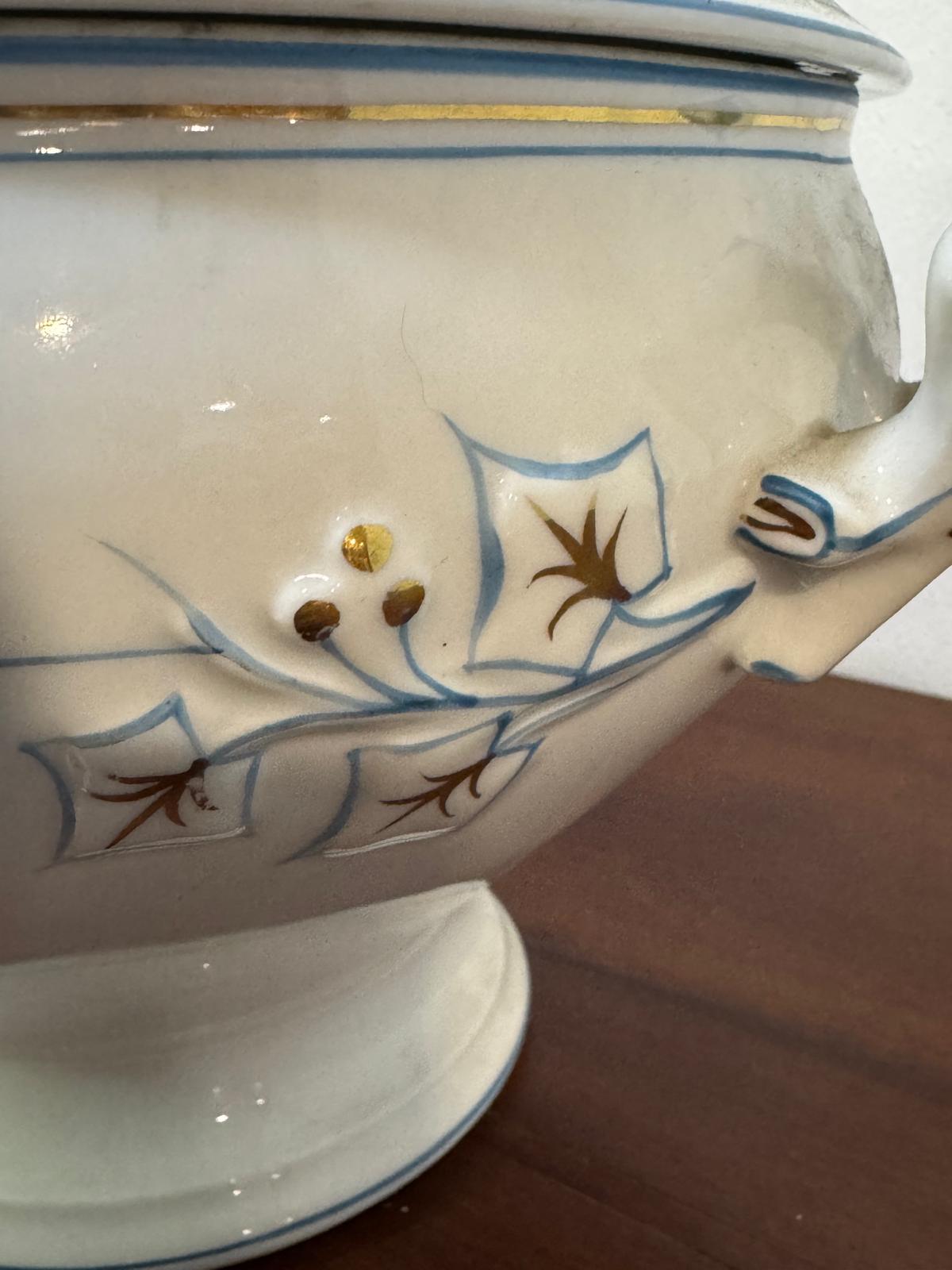 Sopeira Antiga Vista Alegre - Decoração Floral Azul e Dourada - Casa Buisson Porto