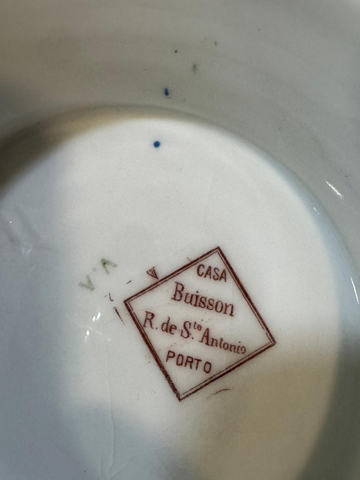 A combinação da qualidade Vista Alegre com a distribuição através da Casa Buisson torna esta peça particularmente interessante para colecionadores, representando a rede comercial de porcelanas finas no Porto do início do século XX.